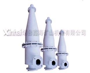 2)水力旋流器。水力旋流器是利用離心力來加速礦粒沉降的分級(jí)設(shè)備,它需要壓力給礦,故消耗動(dòng)力大,但占地面積小、價(jià)格便宜,處理量大,分級(jí)效率高,可獲得很細(xì)的溢流產(chǎn)品,多用于二段閉路磨礦中的分級(jí)設(shè)備。